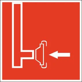 F10 Кнопка включения средств и (систем) пожарной автоматики. 100x100. Оцинкованный металл 05мм. Плёнка самоклеящаяся фотолюминесцентная.