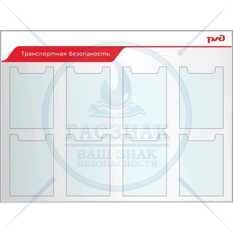 Стенды по охране труда для ОАО РЖД на пластике пвх с профилем NIELSEN, с 8 карманов А4 (Пластик ПВХ 4 мм; 1200х1000)